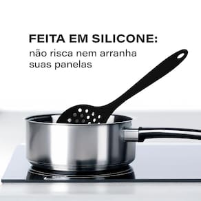 Escumadeira de silicone de alta qualidade, perfeita para o preparo de alimentos, escorrega pela panela sem deixar nenhum arranhão. Não retém cheiro, não prolifera bactérias e ainda não conduz o calor provocado pela chama do fogão. A linha de utensílios da Mimo Style te ajuda nas mais diversas aventuras culinárias. Ótima durabilidade. Possui superfície lisa, facilitando a limpeza e o manuseio. Livre de BPA: não libera substâncias tóxicas na comida. A pega redonda e confortável reduz eficazmente a fadiga do pulso. Produto leve e fácil de manusear. A colher é uma revolução na cozinha, pois pode ser levada ao fogo e consegue raspar as panelas com precisão e sem arranhar o antiaderente. Possui uma bela cor, que pode ser utilizada como decoração. Colher de cozimento que permite a realização e montagem de pratos completos. Ideal para servir na mesa ou direto da panela. Possui também um furo utilitário para pendurar, facilitando a organização do ambiente. Inovadora, leve e fácil de manejar. A limpeza do produto de silicone é simples, basta água corrente e detergente neutro. Lave logo após o uso e posicione o utensílio de cabeça para baixo e deixe a água escorrer, permita que seque completamente antes de usar novamente.