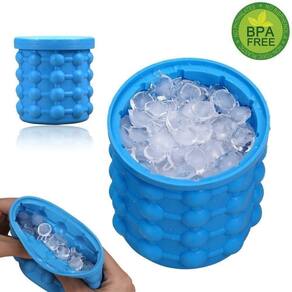 4 em 1: Forma de gelo; Reservatório de gelo no congelador; Balde de gelo para servir; Sirva suas garrafas no gelo. Alta qualidade e é fácil de usar e limpar Material do produto: Silicone Cor do produto: Azul Tamanho do produto: 13cmx12cm Peso do produto: 220g Suporta até 120 cubos de gelo com design exclusivo de câmara dupla As câmaras externas congelam os cubos de gelo. O cilindro interno armazena-os. Economize muito espaço no seu freezer. Mantém os cubos frescos e sem odor, com tampa hermética.