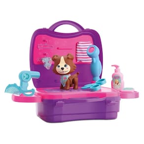 Contém: 1 Maleta, 1 cachorrinha, 1 Shampoo, 1 Secador, 1 Pentinho, 1 Sabonete, 2 Cabides, 1Tesoura sem corte, 1 Toalhinha, 1 Bandana, 1 Mamadeira, 1 Duchinha que sai água.
