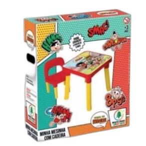Minha mesinha turma da monica com cadeira monte libano Descrição Mesa com 1 cadeira infantil Variações: Turma da monica Medidas mesa: Comprimento: 49 cm Largura: 49 cm Altura: 42 cm Medidas cadeira: Comprimento: 23 cm Largura: 31 cm Altura: 44 cm Faixa etária: A partir de 3 anos Limpeza e conservação: Recomendamos a limpeza com água fria, detergente neutro e usar a esponja do lado macio. Depois basta secar com um pano limpo e seco. Componentes de fabricação: Plástico pp Com a mesa e cadeira infantil, as crianças vão ficar muito mais animadas para brincar e fazer atividades irá atender todas as necessidades e auxiliar o desenvolvimento de nossos pequenos. Ideal para brincar, estudar ou mesmo utilizar para o lanche ou outras atividades. Possui material resistente, seguro, leve e fácil de levar para qualquer lugar. Pode ser Utilizado para diversas atividades no dia a dia, auxiliando e incentivando a coordenação motora dos pequenos.Contém 1 mesa com tampo removível para guardar objetos e 1 cadeira desmontável. Uma vida organizada começa com pequenos detalhes e podemos dizer que esse caminho inicia-se com a organização de armários e prateleiras. Homologação Inmetro: CE-BRI/IQB 002755 54760/21-033 Marca: Não Informado