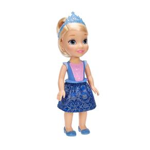 A Boneca Cinderela da linha Minha Primeira Princesa Disney é um brinquedo desenvolvido para crianças a partir de 3 anos. O modelo apresenta o visual clássico da personagem, com vestido característico na cor azul e acabamento em tecido, acompanhando acessório de cabeça (tiara).