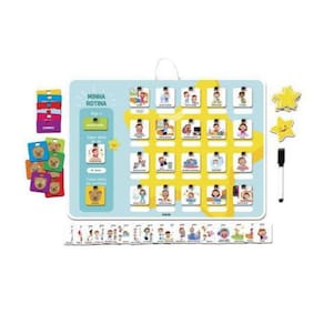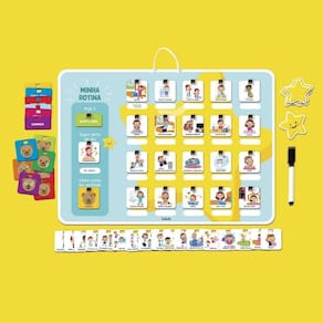 O dia a dia das crianças fica mais fácil quando elas têm clareza da sua rotina. O que devem fazer, o que vem antes e o que vem depois. Com o quadro de rotinas é possível propor atividades, meta do dia, horários, conversar sobre como se sente e ainda conquistar estrelinhas como incentivo. Com o quadro de rotina para filhos se cria ótimas oportunidades para o diálogo entre família em diversos níveis, como sentimentos, valores, responsabilidades, até qualidade de vida e futuro. Cada família é única e achará o seu próprio jeitinho de melhor utilizar esta tabela de rotina diária infantil. Feito de madeira reflorestada, contém 1 quadro medindo 38 27 cm e 7 dias da semana, 9 sentimentos, 38 atividades/metas, 1 canetinha de escrever e apagar e 1 saco de pano. 38 rotinas / metas: Acordar Escovar os dentes Trocar as roupas Ir à escola Café da manhã Jantar Lanche Almoço Usar o banheiro sozinho Dever de casa Hora do descanso Permitido assistir TV Permitido os eletrônicos Se alimentar bem Dormir no seu quarto Brincar com jogos Atividades manuais Brincar ao ar livre Poupar Hora de dormir Escovar os dentes Tomar banho Leitura Orar / rezar Beber mais água Organizar a bagunça Arrumar sua cama Ajudar nas tarefas do lar Cuidar do pet Ir à fono. / T.O. / Psico. Ser gentil e amigável Aula de... Aula de... Não gritar / palavrões Aula de inglês / francês / espanhol Aula de reforço escolar Ir ao dentista Ir à consulta médica