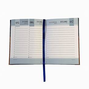 Com capa dura resistente nas cores azul e marrom, oferece proteção extra e um visual sofisticado. O miolo contém espaço suficiente para anotações diárias, compromissos, lembretes e planejamentos, sendo ideal para estudantes, profissionais ou uso pessoal.