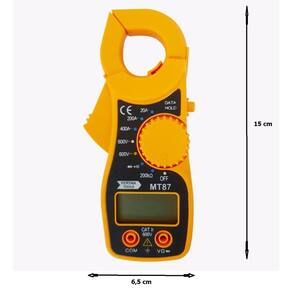 Descrição do produto: Com o Alicate Amperímetro Digital MT87 é possível medir voltagens AC/DC, corrente AC, resistência, diodos e fazer testes de continuidade audível.