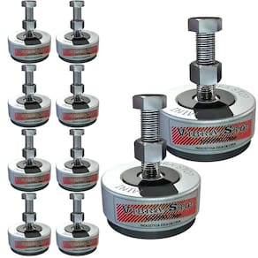 O Vibra-Stop MINI12 é projetado com uma estrutura que promove o perfeito alinhamento das máquinas, o que não só contribui para a durabilidade do equipamento, mas também assegura um ambiente de trabalho mais seguro e confortável. Este modelo é equipado com um sistema de nivelamento exclusivo que corrige pequenos desníveis do piso de maneira rápida e eficiente, aumentando a precisão e o desempenho do equipamento.