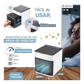 Portabilidade e Conveniência: Compacto e alimentado por USB, perfeito para qualquer local. Uma solução prática para se refrescar e manter o conforto onde quer que você vá. Economia de Energia e Custo: Mais eficiente que um ar condicionado convencional, reduzindo seus custos com eletricidade e oferecendo um ótimo custo-benefício. Melhoria do Ambiente: Umidifica e filtra o ar, criando um espaço mais saudável e confortável. Alguns modelos ainda oferecem aromatização para uma experiência ainda mais agradável.