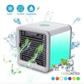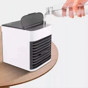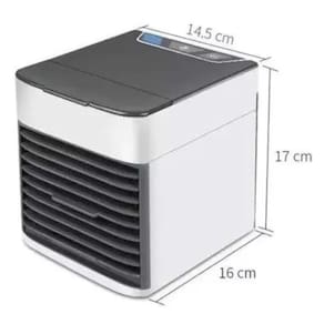 Tipo de climatização: frio Peso: 1 kg Altura: 15 cm Comprimento: 15 cm Largura: 16 cm É umidificador: sim É purificador de ar: sim Com função de ventilação: sim Capacidade de água: 0.5 l Potência: 10 w Quantidade de velocidades: 3