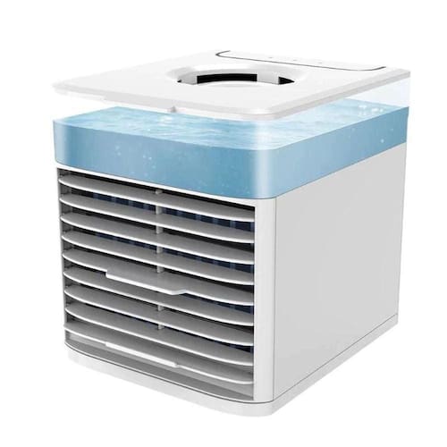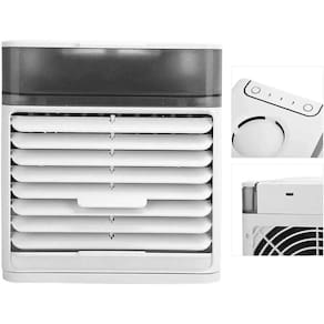 Mini ar condicionado Ar condicionado portátil climatizador Pessoal, O mini Ar condicionado criará um ambiente mais fresco e gostoso de respirar ao seu redor. O Climatizador de Ar Pessoal chega para livrar você dos dias mais quentes ou secos, porque cria um oásis particular de frescor e bem-estar. Extremamente compacto e leve, ele conta com um sistema de resfriamento econômico e perfeito para quem sofre com alergias e doenças respiratórias, pois evita o ressecamento do ar. Descrição: Basta colocar uma pequena quantidade de água em seu reservatório e ligá-lo. Automaticamente, seu sistema inicia um processo de evaporação da água que, ao entrar em contato com o ar quente, o resfria na hora, além de reter impurezas. Ele é fácil de ser transportado e é perfeito para usar na mesa do escritório, quarto ou até mesmo na bancada da sua cozinha. Basta conectá-lo em uma entrada usb. Ainda conta com 3 níveis de ventilação, para você escolher a temperatura ideal para cada momento do dia. Moderno e elegante, ele possui luzes personalizadas em sua lateral e funciona conectado a uma entrada usb. Especificações: Marca: Ultra; Modelo: Air Cooler; Capacidade do tanque de água: 370 ml; Criar uma zona de resfriamento pessoal: Sim; Resfria a temperatura ambiente pessoal até 6-8 graus; Silencioso: Sim; Ventos velocidade: 3 modos (Alto/Médio/Baixo) Funcionamento: Até 6 ate 8 horas; Baixo consumo: Energia; Modo de usar: Basta adicionar água e ligá-lo; Desligamento automático: Quando acaba a agua; Potência: 10 w; Dimensões: 17,2 X 17 X 16,8 cm; Garantia: 90 dias pra defeito de fabrica. Itens Inclusos: 1 Climatizador de Ar Portátil; 1 Cabo usb; 1 Manual Do Usuário. Marca: Nexfan