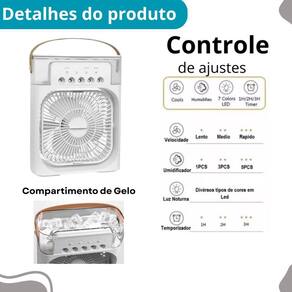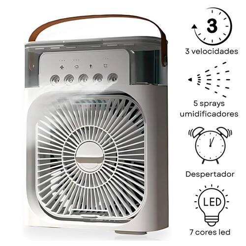 Mini ar condicionado premium para ambientes compactos com função gelo Descrição do anúncio: O climatizador é a solução perfeita para proporcionar um ambiente mais fresco e agradável. Com três opções de vaporização e iluminação decorativa led, ele é ideal para quartos, escritórios e salas.