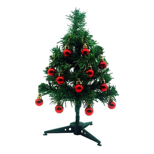 Mini Árvore Natal Decorada Com Bolinhas Vermelhas 30cm