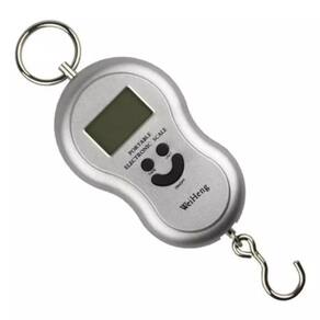Modelo: Weiheng Capacidade: Até 40kg Display: Digital LCD Material: Plástico resistente e gancho de metal Alimentação: Bateria Funções: Tara, unidade de medida ajustável (kg/lb)