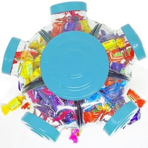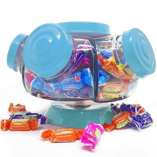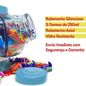 Mini baleiro giratório vidro pequeno antigo bomboniere azul Porta doce baleiro pequeno giratório 5 potes azul claro tiffany / bebê - baleiro artesanal Atenção: Cor Azul Baleiro artesanal com visual retrô atende a todos os tipos de consumidores ávidos por produtos diferenciados e ao mesmo imunes ao tempo.Podendo ser usado em estabelecimentos e em sua própria residência como item de decoração na sala, sala de estar, salão de festas,etc.. Com vidro transparente para ver todos os itens que colocar dentro: Balas, doces e até cápsulas de café. Produto 100% artesanal e com acabamento diferenciado e resistente. Obs: as pequenas imperfeições, tais como irregularidades na espessura, no peso ou no diâmetro e as pequenas bolhas, que às vezes se formam dentro do vidro, são a clara garantia de um produto feito artesanalmente. Todos os produtos acompanham nota fiscal e estão a pronta-entrega. Pediu, chegou Ficha técnica: - mini baleiro de vidro giratório 05 potes azul claro ( tiffany ) - vidro transparente - capacidade 250 ml por gomo/pote - tampa em plástico resistente pintado - base em plástico resistente - cores disponíveis: Azul Dimensões do mini baleiro: - comprimento 24 cm - altura 15 cm - peso líquido 2,5kg Itens inclusos 01 mini baleiro giratório de vidro retrô cor azul claro tiffany Marca: Houme
