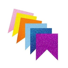 10 unidades de mini bandeirinhas com cores vibrantes e detalhes em glitter, garantindo um visual encantador.