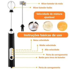 Mini batedor misturador elétrico para bebidas, 2 em 1, recarregável via USB, corpo em aço inoxidável, motor de alta performance com 3 velocidades, silencioso, compacto e fácil de limpar.Acompanha copo