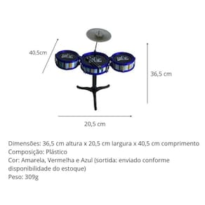 Mini bateria musical 7 peças- Você já observou como é difícil estimular o talento musical do seu filho sem um brinquedo que una ritmo, cores e segurança Sem as ferramentas certas, ele pode perder o interesse e não desenvolver habilidades importantes desde cedo. Este conjunto de mini bateria com tambores coloridos é a solução ideal. Oferece diversão envolvente, estimula o ritmo, a coordenação motora e a concentração, e ainda é seguro e fácil de montar para que as crianças brinquem com confiança. Benefícios - estimula o ritmo e a musicalidade desde cedo - desenvolve coordenação motora e foco - mantém as crianças entretidas por mais tempo com brincadeiras educativas - cores vibrantes aumentam o interesse e a percepção sensorial Especificações técnicas - dimensões: 36,5 cm altura x 20,5 cm largura x 40,5 cm comprimento - composição: plástico - cor: amarela, vermelha e azul conforme disponibilidade - peso: 309 g - Conteúdo da embalagem - 01 tambor grande - 02 tambor laterais - 01 suporte de prato - 02 baquetas - 01 base com três pés Garanta já este conjunto musical e transforme cada momento em uma apresentação divertida e educativa para o seu filho Informações importantes sobre a compra - com de fábrica Dúvidas frequentes: 2 - em quanto tempo meu pedido será enviado 3 - é confiável fazer esta compra Resposta: desde a criação da nossa empresa já temos milhares de clientes satisfeitos em outras lojas online. Somos uma loja oficial neste marketplace. Além de você ter todas as garantias desta plataforma, ainda lhe oferecemos de fábrica. 4 - os produtos possuem Resposta: sim, oferecemos de 30 dias em todos nossos produtos. Caso ocorra qualquer problema iremos tratar da melhor forma para resolver o ocorrido. 5 - essa compra é segura Resposta: sim, oferecemos total segurança na sua compra bem como sigilo dos seus dados. 6 - e se eu não gostar do produto, terei meu dinheiro de volta Resposta: de acordo com o cdc código de defesa do consumidor todo cliente de compras online tem até 7 dias para devolver o produto em caso de arrependimento. E você não terá custo na devolução. Lembrando que você será reembolsado em 100% do valor da compra. Caso você tenha alguma dúvida, nos envie uma mensagem e responderemos o mais rápido possível. Homologação Inmetro: IP-BRI-2600/2021-03 Marca: Não Informado