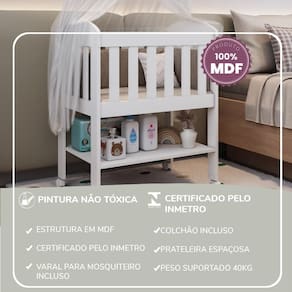 Compacto e funcional, este mini berço é perfeito para quem busca praticidade sem abrir mão do conforto e da segurança. Ideal para manter o bebê sempre por perto nos primeiros meses.