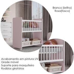 O Mini Berço Outside é a escolha ideal para proporcionar bem-estar e cuidado nos primeiros meses do bebê. Produzido em MDP (12/15mm) com acabamento em pintura UV. Conta com grade móvel (revestida com PVC), suporte para mosquiteiro (em alumínio), rodízios giratórios e almofada tipo colchonete (85x38 cm). Não acompanha pelúcias ou itens de decoração. Este produto será entregue em 01 volume.