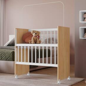 Mini Berço Encanto, desenvolvido para oferecer segurança e conforto ao bebê. Estrutura em MDP/MDF (6/12/15/25 mm) e acabamento UV. Composto por grade móvel e ajustavél (MDF revestivo em PVC virgem) e suporte superior para mosquiteiro. Possui rodízios com trava e acompanha almofada tipo colchonete (espuma D20). Não acompanha pelúcias ou itens de decoração. Produto será entregue em 01 volume.