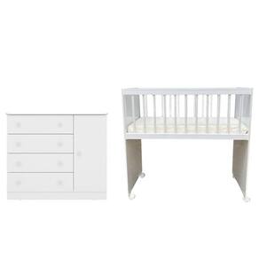 Mini Berço Moisés Alegria e Cômoda Infantil Doce Sonho 2561 Branco Brilho – Qmovi