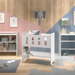 Produzido 100% em mdf, foi projetado para ser montado como Mini Berço, Trocador ou Escrivaninha, visando maior tempo de uso do móvel.