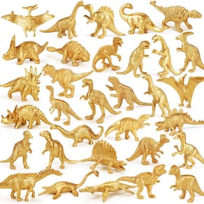 - ?Seguro e de alta qualidade?Os brinquedos de dinossauro de ouro simulados para crianças de 2 a 4 anos são feitos de plástico de alta qualidade, sem cheiro irritante, seguros e duráveis. Texturas moldadas exclusivamente são mais realistas. O pescoço, a cauda e os membros do dinossauro podem ser dobrados para que crianças de mais de 1 ano possam brincar com segurança à vontade. Os mini brinquedos entre 5 a 7,6 cm são perfeitos para sacolas de lembrancinhas de festa, decorações de bolo ou brinquedos fidget para crianças.