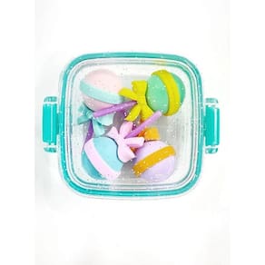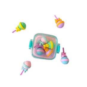 A marmita fofa em que as borrachas são apresentadas também é prática para armazenar e transportar as borrachas com segurança. É uma opção perfeita para manter sua papelaria organizada e ter suas borrachas sempre à mão.