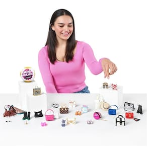 Descubra o encanto do Mini Brands Fashion - onde a moda se encontra em escala reduzida! Com uma coleção de mais de 80 Minis icônicos, incluindo bolsas estilosas, sapatos elegantes e acessórios da última moda, você pode colecionar os estilos que estão em alta da temporada. Encontre o visual ultra raro com a mochila vermelha, cinto, saltos e até mesmo um gato com óculos de sol combinando! Vista-se para impressionar com os looks em tamanho mini e adicione um toque de estilo único a qualquer coleção de acessórios.