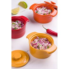 Mini Caçarola de Porcelana Com Tampa Germer Vermelho - Características Gerais do Produto: Composição e Dimensões: 1 Caçarola 1 Tampa 5cmx9,cm Material: Porcelana Informações Adicionais: Lavar com detergente neutro e esponja macia. Vai ao Microondas, forno e máquina de lavar louças. Não utilizar direto na chama. Acompanha o produto: 1 peça A : do fabricantebr/ Marca: Não Informado Ean: 7891658162614