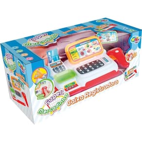 Caixa Registradora Mini Super Mercadinho Com Som E Luz, Colorida. Caixa Registradora Infantil Eletrônica, vem com diversos acessórios, para a brincadeira. Ela conta com miniaturas de produtos de supermercado, além do simulador de leitor de produtos para que o faz de conta fique perfeito! Benefícios: - Som e Luz. Material Incluso: 1 Caixa Registradora Infantil Com Som e Luz + itens: Miniaturas de produtos de supermercado Cédulas de dinheirinho Cartão magnético de brinquedo Detalhes: Utiliza 2 pilhas AA. Não inclusas. Medidas Registradora: 14 cm x 11cm Idade recomendada: A partir de 03 anos Selo do INMETRO CE-BRI/BRICS 00070-14 NM 300/2002 Ean: 7899527149667