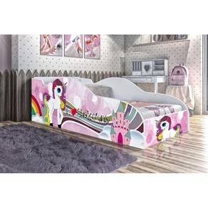 MINI CAMA CARRO JUVENIL ADESIVADA UNICÓRNIO ROSA LUKE MÓVEIS