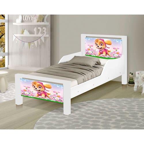 Mini Cama de Criança Infantil Skaye Adesivada com Colchão - Branco