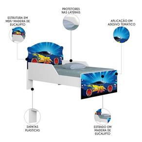 Mini Cama Infantil 148x68cm Proteção Lateral Carro Azul Z53 - Mpozenato