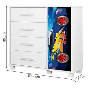 Mini Cama e Cômoda Lívia, um conjunto onde sonhos viram histórias inesquecíveis! Compostos por estrutura 100% MDF e acabamento em Verniz Brilho. A mini cama conta com bordas arredondadas e grades de proteção para maior segurança e estrados reforçados sendo ideal e indicado para colchões tamanho mini cama de 150X70 cm (COLCHÃO NÃO INCLUSO). A cômoda conta com um tampo amplo e espaçoso, prateleira interna (suportando até 3 kg distribuídos), gavetas com corrediças telescópicas, e porta lateral com dobradiças metálicas, além de puxadores PVC. Ambas destacam-se pelo design alegre e temático com acabamento em Adesivo Temático anti risco. NÃO ACOMPANHA OBJETOS NEM DEMAIS DECORAÇÕES. Este produto será entregue em 3 volumes.