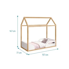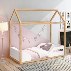 Seu design de casinha em madeira adiciona um toque de fantasia e aventura ao ambiente, transformando o quarto em um lugar onde a imaginação pode florescer. Além do estilo, a mini cama prioriza a segurança da criança. Com sua altura baixa ao chão, a criança pode entrar e sair da cama facilmente, promovendo independência e autonomia.