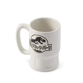 - Design divertido para exibir ou jogar: esta mini caneca branca colecionável com estampa em preto e branco apresenta o icônico logotipo do Jurassic Park com o texto escrito em japonês!