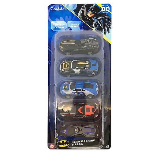 Mini Carrinhos à Fricção - DC Batman - Batmóvel - 5 Hero Machine - Candide: o Kit com 5 Miniveículos Pullback do Batman! Cada miniveículo é feito em metal resistente e possui a emocionante função de puxar para trás e soltar, trazendo à vida os personagens clássicos do Batman. Recrie as cenas mais emocionantes dos quadrinhos e filmes do Batman, ou crie suas próprias aventuras cheias de ação e suspense. Detalhes • Estes incríveis carrinhos são de fricção pull back • Puxe o carrinho para trás e solte-o para ele sair correndo por aí • Design inspirado nos veículos icônicos do Batman: • A brincadeira ficará muito mais emocionante com os Mini Veiculos Pull Back Batman Informações: • Produto: Mini Veículos Pull Back Batman • Marca: Candide Brinquedos • Coleção: DC Batman • Linha: Hero Machine • Personagem: Batman • Tipo: Kit com 5 Carrinhos de fricção • Categoria: Carrinhos e Cia • Movido: à fricção. Basta puxar e soltar • Tamanho (C x A x L): 7.5 x 2.5 x 03 cm • Conteúdo: 5 carrinhos de fricção • Recomendação: para crianças a partir de 04 anos de idade Especificações: • Referência: 4620 • Código de Barras: 7897500546205 • Embalagem (C x A x L): 13 x 22.5 x 4.3 cm • Embalagem (Peso): 0.123 kg • Material / Composição: Metal • Registro: 005812/2022 • Certificado: Órgãos Autorizados - OCP´S (Organismos de Certificação de Produtos) Aviso: • As imagens são meramente ilustrativas • Os pesos, tamanhos e medidas são aproximados • As cores e estampas dos produtos podem ter variações • As informações são de responsabilidade do fabricante ou fornecedor Ean: 7897500546205