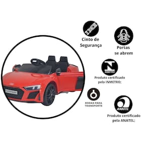 Especificações: - produto indicado para crianças a partir de 3 anos; - bateria recarregável de 12v; - tempo de carregamento: 8 a 12 horas; - velocidade máxima: 3,5km/h; - peso máximo suportado: 25kg; - vem com controle remoto; - tem luzes e som; - tem função frente e ré e duas funções de velocidade; - produto licenciado audi; - produto certificado pelo inmetro: CE-BRI/BRICS 00064-14