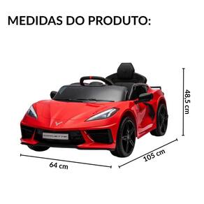 Combinação perfeita entre velocidade, design esportivo e diversão com segurança! Inspirado no lendário Chevrolet Corvette, este modelo impressiona pelos detalhes realistas, acabamento brilhante e estilo moderno, garantindo uma experiência incrível para os pequenos motoristas.