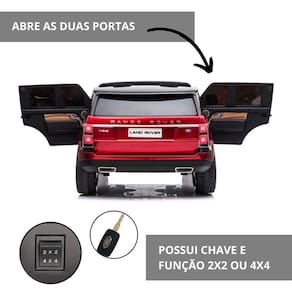 Deixe a criançada pegar a estrada com o Mini Carro Elétrico Range Rover! As brincadeiras ficarão muito mais realistas, pois o mini carro possui luzes, som e função frente e ré. O design incrível é licenciado pela Land Rover. O mini veículo pode ser controlado pela criança por meio de acionamento de pedal e controle da direção, assim como, por um adulto utilizando o controle remoto. É ideal para crianças de 3 a 7 anos, com capacidade de até 25kg. Possui marcha para frente, ré e neutro. Simplesmente o melhor do passeio com a maior aventura. Altamente resistente e durável, peças de qualidade, selo Inmetro e Anatel, para assim, garantir conforto, e principalmente, segurança para os pequenos pilotos.