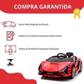 Informações: Idade Mínima Recomendada Pelo Fabricante: +3 anos Dimensões aproximadas do produto (cm) AxLxC: 40cm x 55cm x 104cm Dimensões aproximada da embalagem (cm) AxLxC: 32cm x 58cm x 110cm Material: Plástico Reforçado e Resistente Material das Rodas: Plástico Injetável Funcionamento: Acionamento via Pedal ou Controle Remoto Piso Ideal: Concreto, Piso e Asfalto Tempo de Carregamento da Bateria: 8 a 10 horas Tempo de Funcionamento Aproximado do Produto: 40 á 50 minutos Alcance Aproximado do Controle Remoto: 40 metros Funções: Frente, Ré, Esquerda e Direita Quantidade de Lugares: 1 Lugar Peso máximo recomendado (kg): 25kg Velocidade máxima: 5km/h Cor: Vermelho Som: Sim Luz: Sim Cinto de Segurança: Sim Controle Remoto: Sim Bateria: 6V Recarregável Bateria do Controle Remoto: 02 Pilhas AAA (não inclusas) Abre Fecha Portas: Sim Rodas Livres: Sim Fabricante: IW SKU: IW-BW181VM Conteúdo da Embalagem: 01 Carrinho Elétrico Infantil Lamborghini Sian Licenciado, 01 Controle Remoto, 01 Carregador Bivolt 110/220v e 01 manual de montagem.