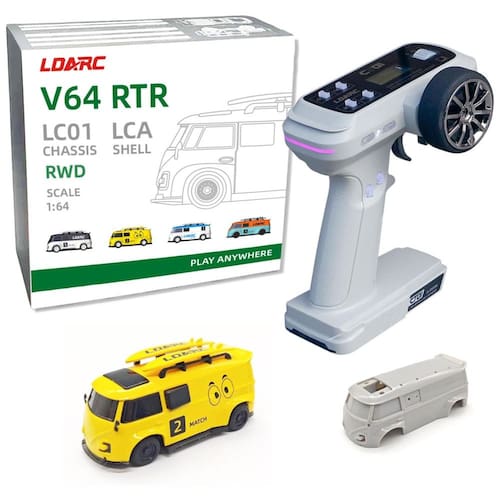 O LDARC V64 RTR é um mini carro RC com motor de alta velocidade, perfeito para corridas. Possui um design delicado e é fácil de manusear como um verdadeiro motorista. O carro vem equipado com luzes analógicas, faróis altos, luzes de pisca, luzes de freio e ré, além de 4 luzes adicionais que podem ser trocadas em qualquer uma das 13 cores disponíveis. O carro e o controle remoto usam a porta de carregamento tipo C, com o cabo de carregamento incluso. O LDARC V64 RTR também possui um alarme de status de baixa tensão da bateria para proteção de segurança, e o farol dianteiro e traseiro piscam rapidamente quando a bateria está fraca. O transmissor de controle remoto CT01 de 8 canais permite o monitoramento da intensidade do sinal em tempo real, exibição de tensão em tempo real e alarme de baixa tensão. O pacote inclui um dos dois tipos de controles remotos disponíveis aleatoriamente.