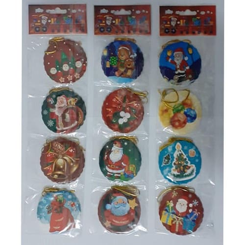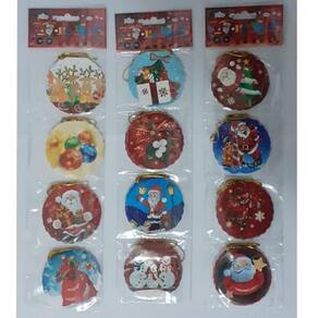 Tamanho do Cartão: 6 cm Formato: Redondo Imagens: Variadas Quantidade de Cartões de Natal: 12 unidades