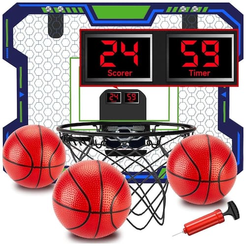 Durável e absorção de choque: Com anéis de aço robustos, painel resistente a quebras e uma rede durável, nossa mini cesta de basquete foi projetada para garantir longa durabilidade. O painel traseiro é equipado com 4 almofadas de esponja de alta elasticidade e absorção de choque, que protegem a porta contra arranhões e ajudam a reduzir o ruído durante o jogo.
