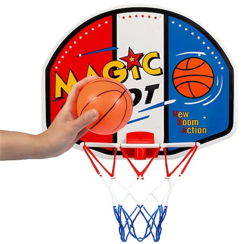 Esta mini cesta de basquete Slam Dunk é perfeita para todos os entusiastas de basquete. Se você está procurando uma atividade interna para manter as crianças entretidas ou quer praticar suas enterradas no seu quarto, este conjunto de basquete Magic Shot é o caminho a seguir! Com uma tabela maior medindo 41 x 33 cm e uma borda de 23 cm de diâmetro, você vai se sentir como se estivesse jogando em uma quadra de basquete de verdade. Feito de plástico leve e durável, este brinquedo de basquete é portátil e pode ser montado na porta ou parede. O suporte sobre a porta e o aro dobrável facilitam o armazenamento e a configuração. Além disso, vem com uma bola de basquete inflável e bomba, então você terá tudo o que precisa para começar a jogar imediatamente. Se você está procurando uma atividade divertida e emocionante para a família e amigos ou quer trabalhar no seu jogo, esta cesta de basquete interna é perfeita para todas as idades e níveis de habilidade. Você vai adorar a experiência autêntica de basquete e as horas de diversão que ela oferece. Além disso, é um ótimo presente para qualquer fã de basquete. Então, não espere mais para colocar suas mãos nesta mini cesta de basquete Slam Dunk e comece a praticar seus movimentos hoje! - Gancho de basquete grande: medindo 40,6 cm x 33 cm e com um aro de 23 cm de diâmetro, esta mini cesta de basquete interna é maior do que outras opções no mercado, oferecendo uma experiência de basquete mais realista para crianças e adultos. - Fácil de montar: sem perfuração, sem bagunça. Esta cesta de basquete montada na porta pode ser pendurada na parede ou sobre a porta, e o aro pode ser facilmente dobrado para armazenamento conveniente. SWISH! - Divertido e emocionante: mantenha as crianças ativas em ambientes internos ou externos com este divertido e emocionante brinquedo de jogo de basquete. Feito de plástico leve e durável, é portátil o suficiente para levar para qualquer lugar. SLAM DUNK! - Conjunto completo: esta cesta de basquete para quarto infantil inclui tudo o que você precisa para horas de diversão, incluindo uma bola de basquete inflável, bomba, tabuleiro, aro, rede e grampo para facilitar a montagem. - PARA O ESCRITÓRIO OU DORM: Todo mundo sabe que é mais fácil se concentrar quando você está fisicamente ativo. Você pode fazer isso no conforto do seu escritório ou dormitório com nosso conjunto de mini cesta de basquete interna. Coloque-o sobre a porta e o beco!