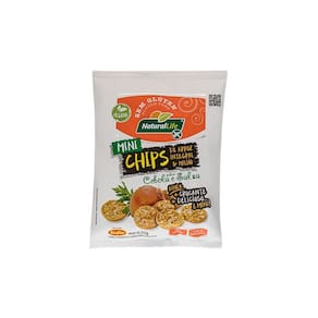 Os tradicionais chips de arroz integral e milho, da natural life sem glúten, agora na versão mini, para levar na lancheira ou na bolsa. Os mini chips são snacks mais saudáveis que os tradicionais, pois apresentam menos sódio e zero gordura trans, além de crocantes e deliciosos.