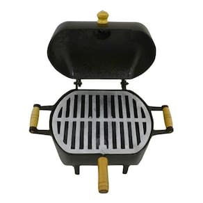 Para Utilizar em qualquer lugar. Com Grelha de alumínio com cabo e batoque de madeira, bem como, chaminé que pode ser fechada, na tampa superior para saída de fumaça. Não faz fumaça nem sujeira e cabe em qualquer lugar. Exclusiva pintura craqueada, churrasqueira toda preta. Exclusivo mecanismo para fechamento da chaminé.