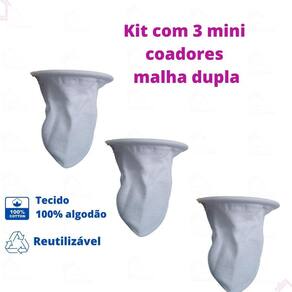 Conteúdo da embalagem: 3 minis coadores individuais malha dupla, em tecido 100% algodão. Marca: Irs Coadores