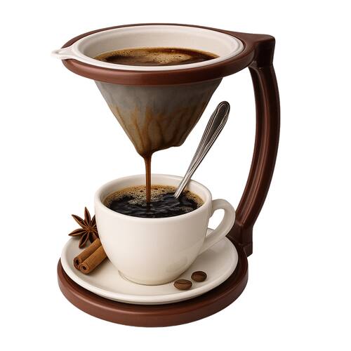 Mini coador inclui suporte e filtro reutilizável, ideal para preparar cafés fresquinhos de forma prática e com estilo