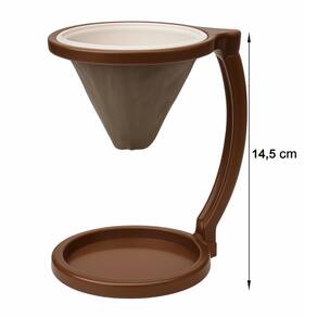 Na cor marrom com filtro branco, combina com diversos estilos de cozinha — do moderno ao rústico — harmonizando com xícaras brancas como nas imagens.