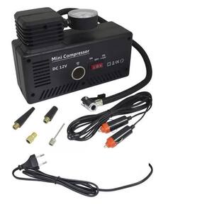 Mini Compressor De Ar Automotivo Elétrico E 12v Multifunção 220v Informações técnicas 12v e eletrico 110v ou 220v Produto: Novo Marca: Importway Modelo: IWMCAE-300300-1 Cor: Preto Aplicação: Carro, moto, bicicleta, bola e outros infláveis Alimentação: 12V e ELETRICO escolha a voltagem 110v ou 220v Pressão máxima: 300 PSI Adaptadores: 4 adaptadores Produto portátil: Sim Medidor : Sim Manômetro de precisão: PSI e Kg/cm para calibragem Período máximo de uso contínuo: 10 minutos Fluxo de ar: 30 l/min É portátil: Sim É mini: Sim Com lanterna: Sim Peso e medidas aproximados Medidas do produto: 14 x 7 x 20 cm altura x largura x comprimento Comprimento do cabo de força: 1,40 m Comprimento do cabo do acendedor: 2,80 m Comprimento da mangueira de ar: 45 cm Medidas da embalagem: 9 x 17 x 22 cm altura x largura x comprimento Peso: 1,70 Kg Itens Inclusos: 1 Mini Compressor, 4 Adaptador, 1 Cabo de Acendedor Marca: Não Informado